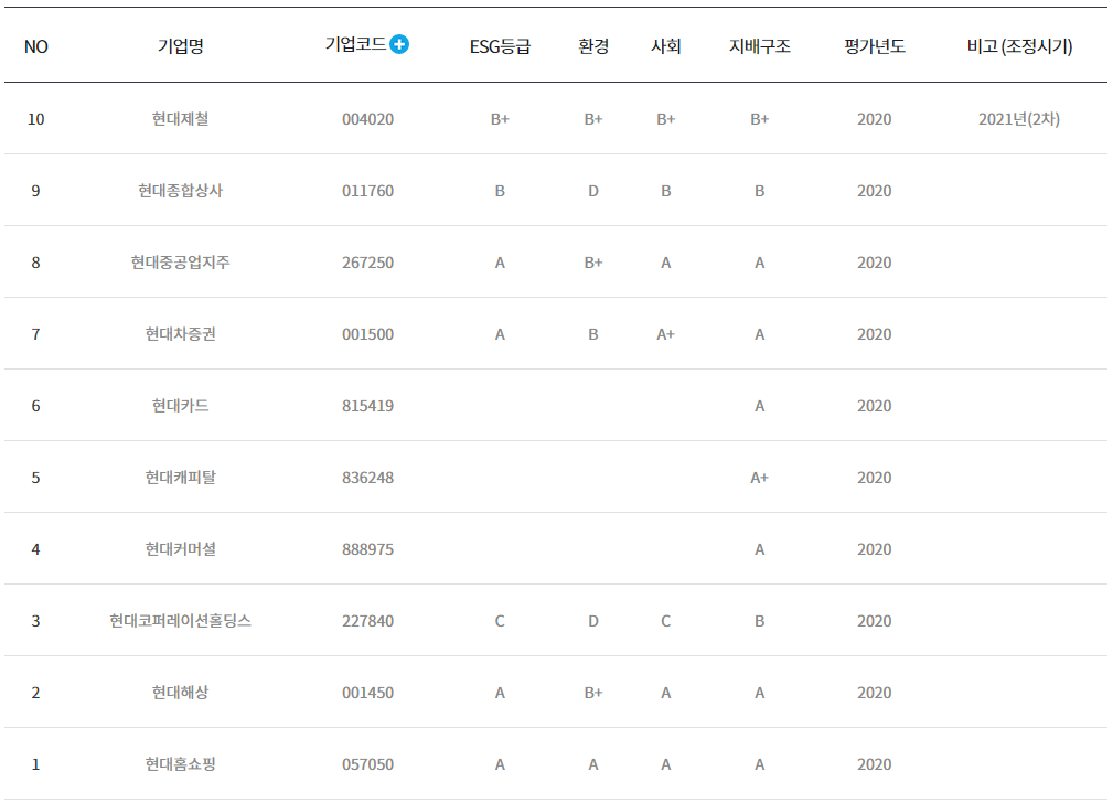 다음은 현대/현대자동차 그룹입니다.