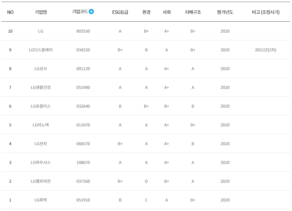 LG그룹을보면 LG이노텍, LG상사, LG하우시스가 높은 평가를 받았으며 LG화학은 석유기반의 사업이다보니 환경부문에서 낮은 평가를 받았습니다.