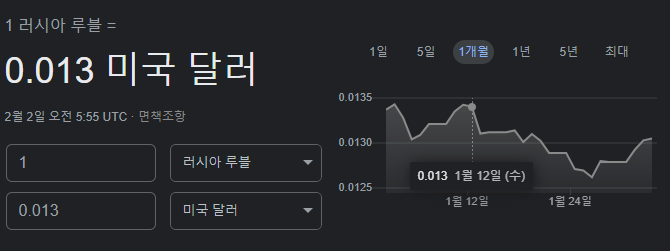 - 1 원(대한민국) = 0.0064 루블(러시아)