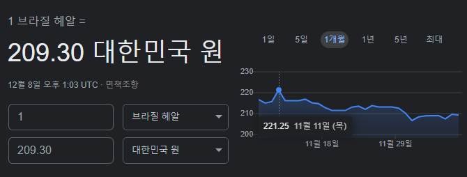- 대한민국 1,000원은 4.78 헤알입니다.