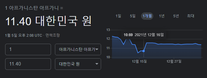 - 아프가니스탄의 화폐단위는 아프기니입니다.