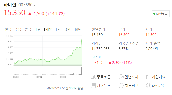 원숭이 두창 바이러스와 관련있는 주식은 HK이노엔과 파미셀 두개이다. HK이노엔은 국내에서 유일하게 천연두 백신을 생산하는 기업으로 2009년에 허가받은 2세대 두창 백신 대테러 대응용으로 정부에 백신을 납품하고있다.